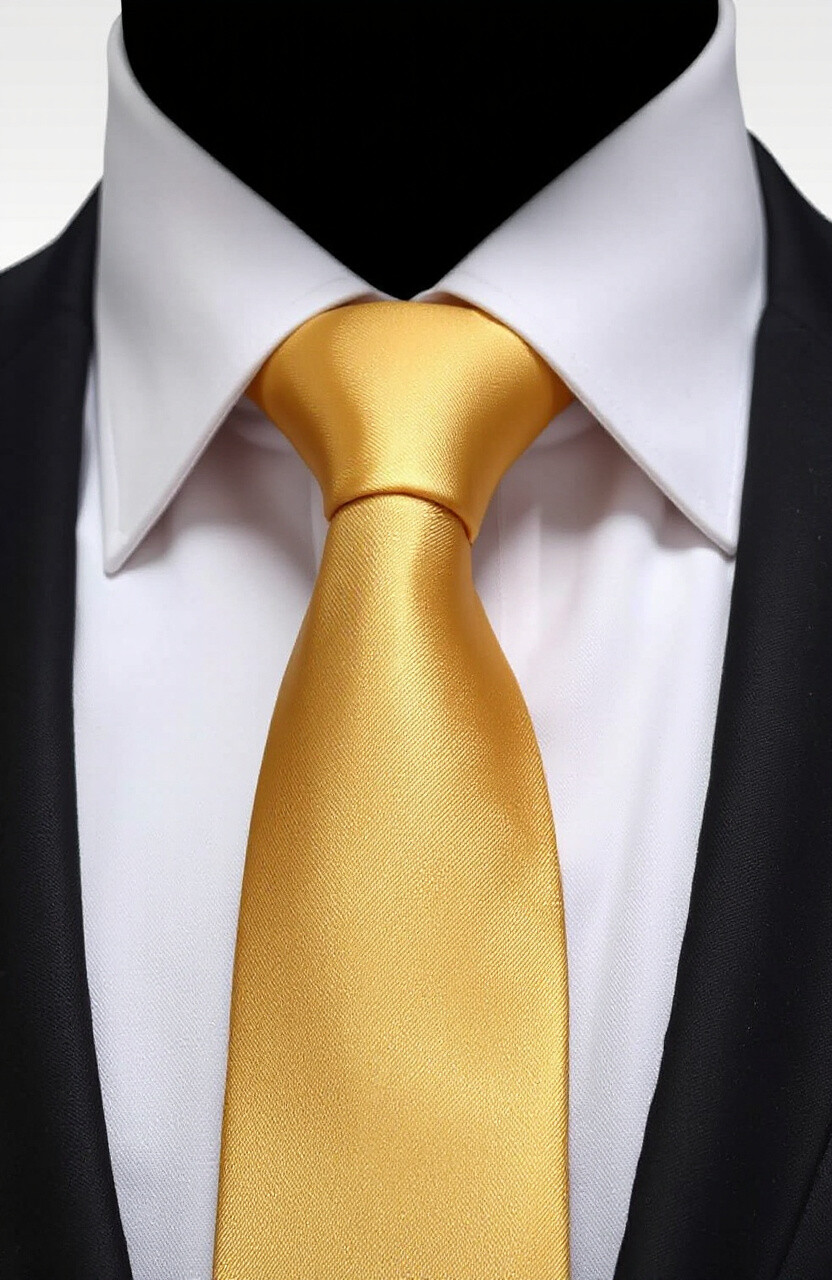 Gold is a color that signifies wealth and success. This striking gold silk tie is perfect for making a bold statement.