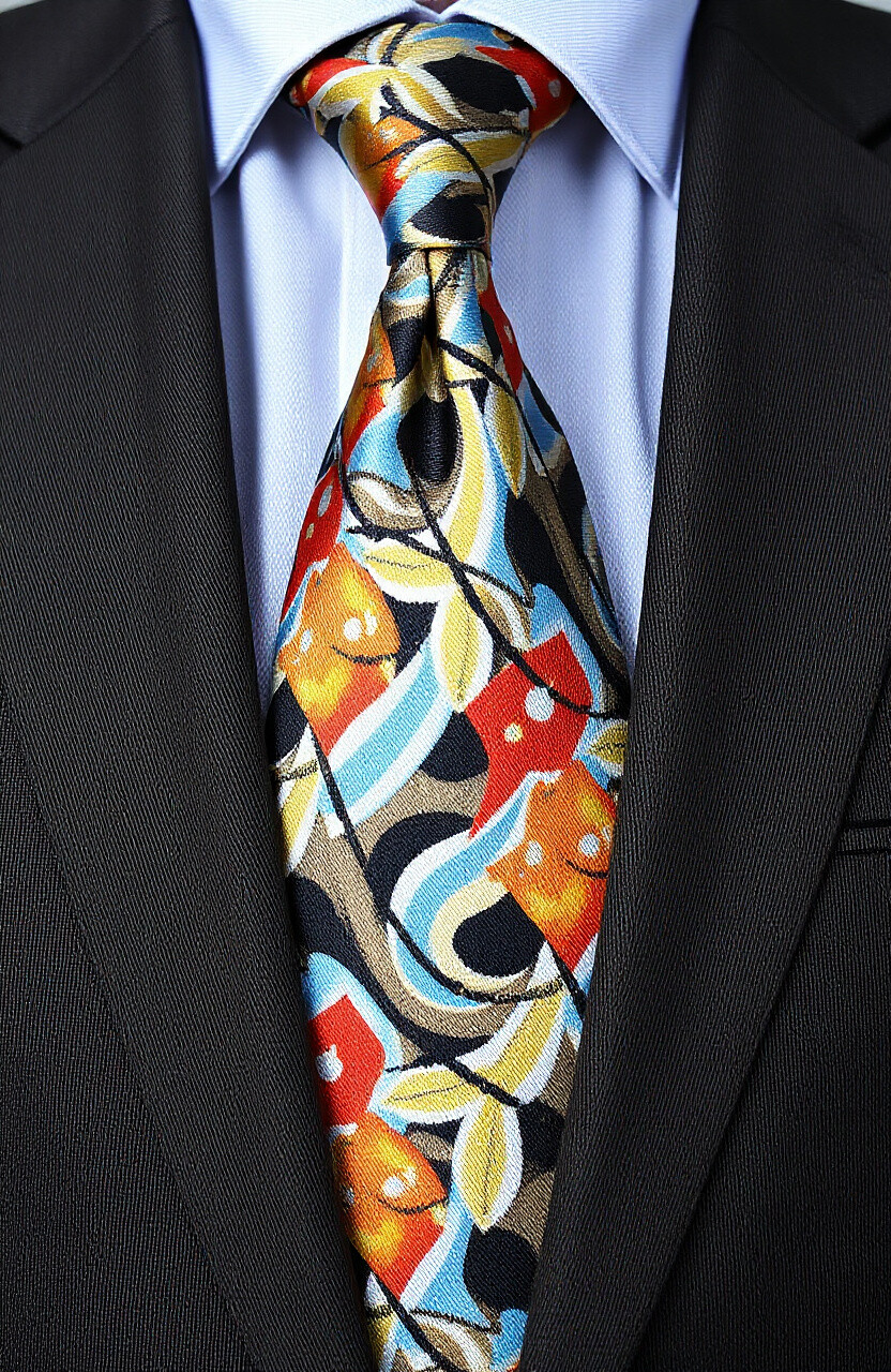 This tie features an abstract pattern that is sure to turn heads. It’s perfect for those who want to add a creative touch to their outfit.