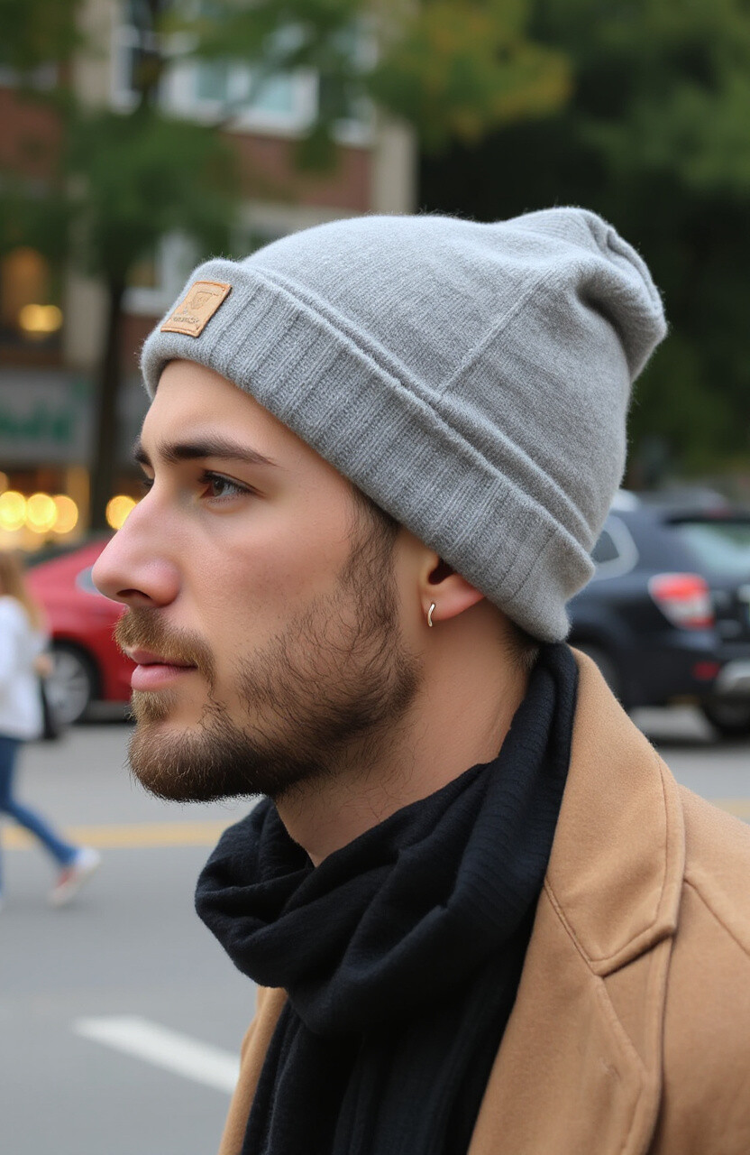 A cuffed beanie offers a snug and stylish fit. It’s perfect for chilly weather and adds a casual touch.