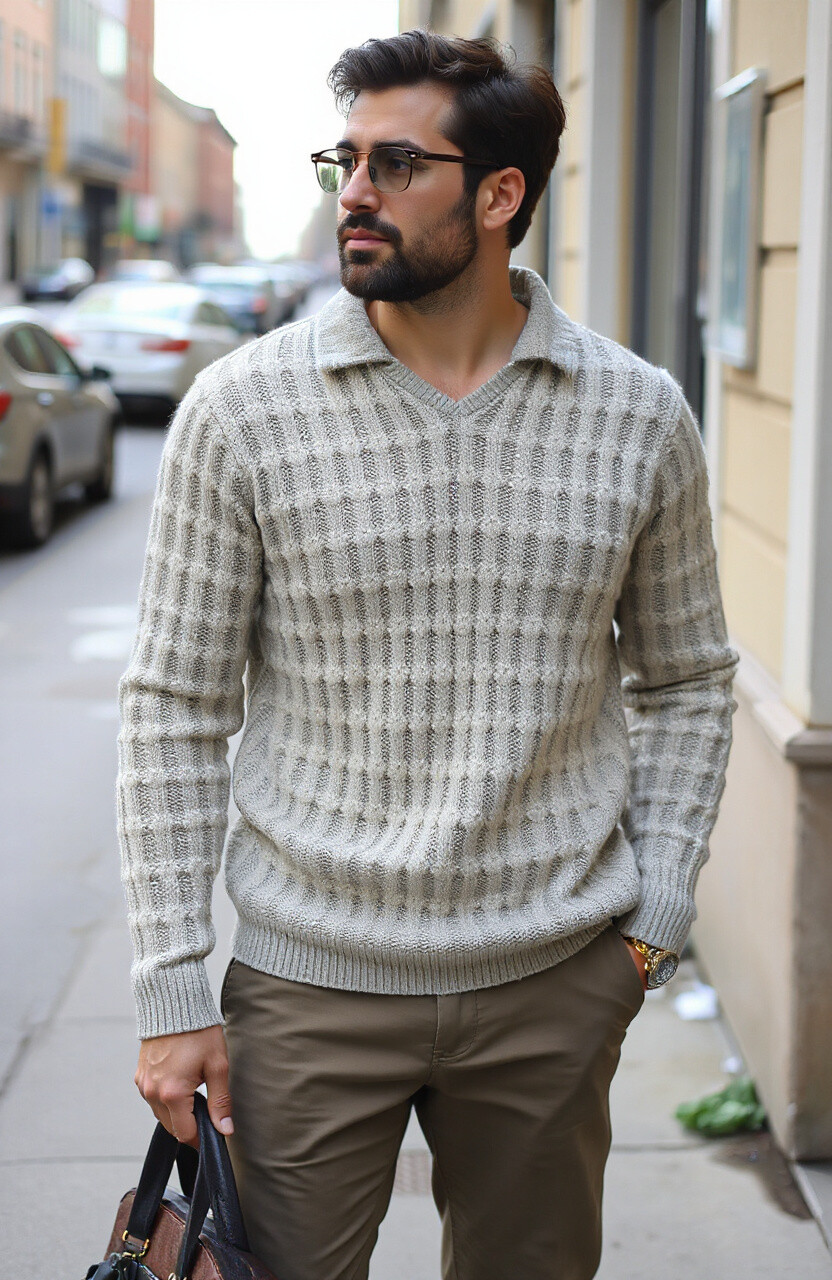 A knit sweater adds texture and warmth to your outfit. It’s perfect for layering during colder months.