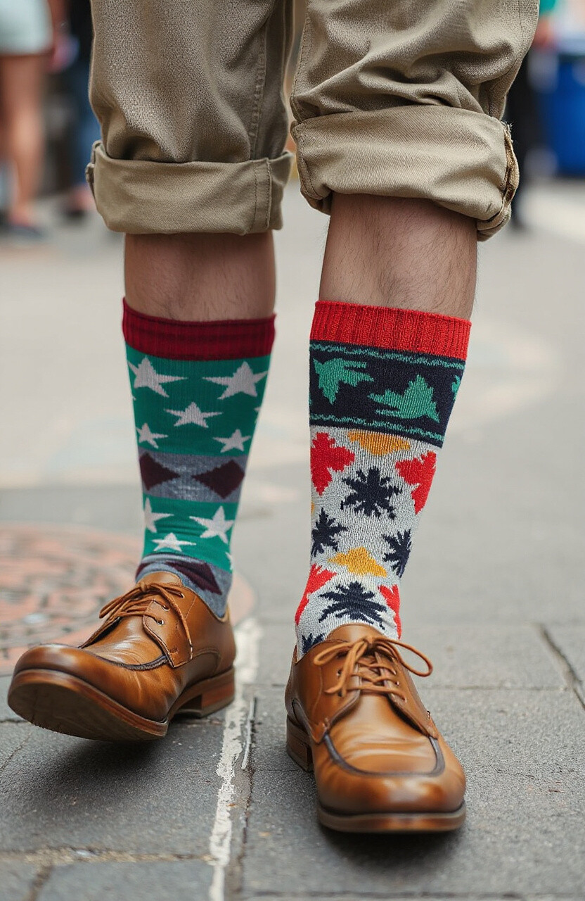Socks with fun patterns or colors can add a playful touch to your style. They’re like a hidden surprise in your outfit.