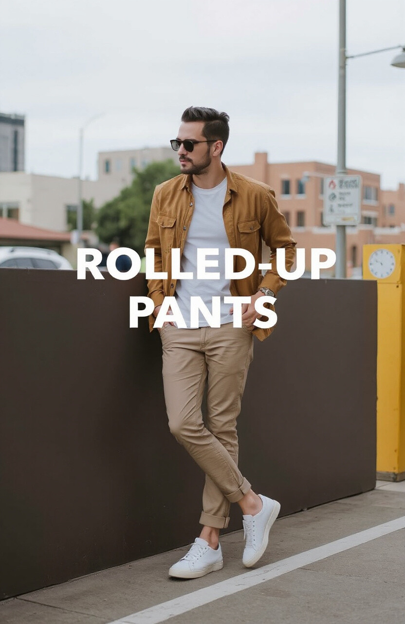 Rolling up your pants is a simple trick that can change your whole look. It gives a relaxed and casual vibe.