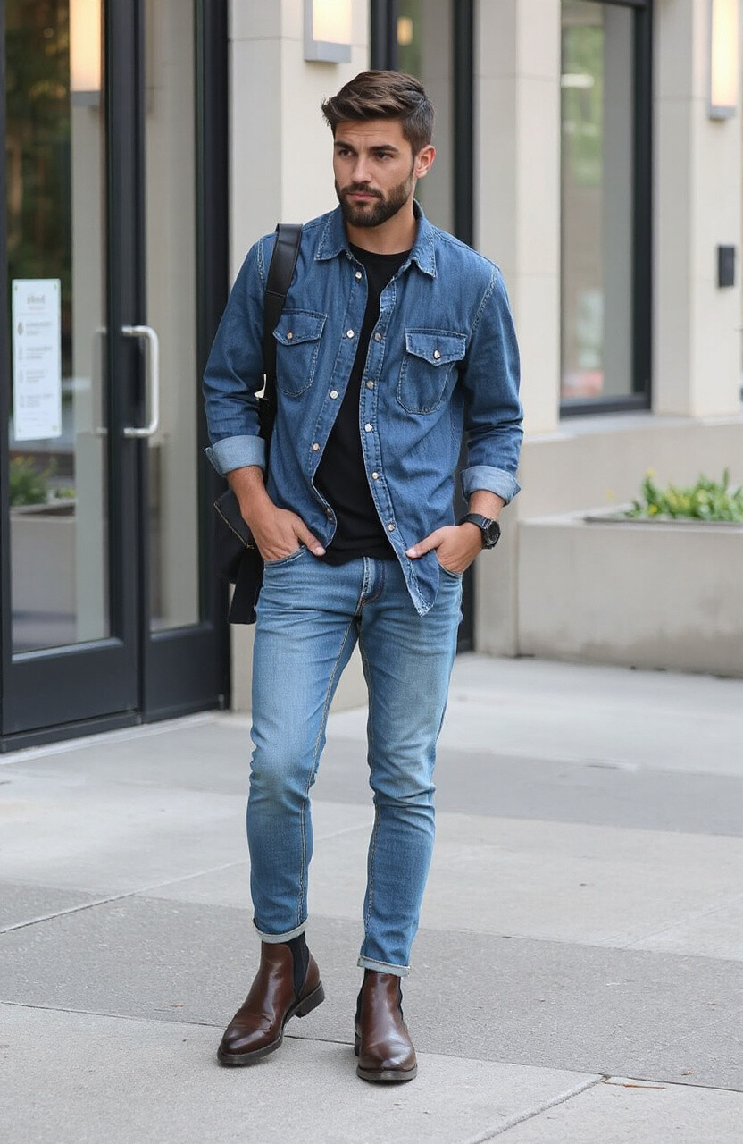 A denim shirt is versatile and can be dressed up or down. It’s perfect for a casual yet stylish look.