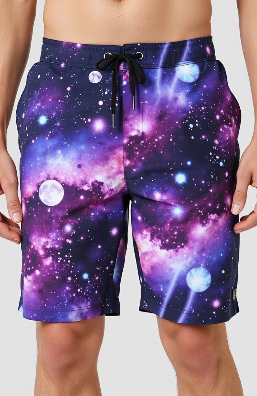 Reach for the stars with Galactic Glow trunks. The space-themed design is fun and unique. Perfect for those who love to dream big.