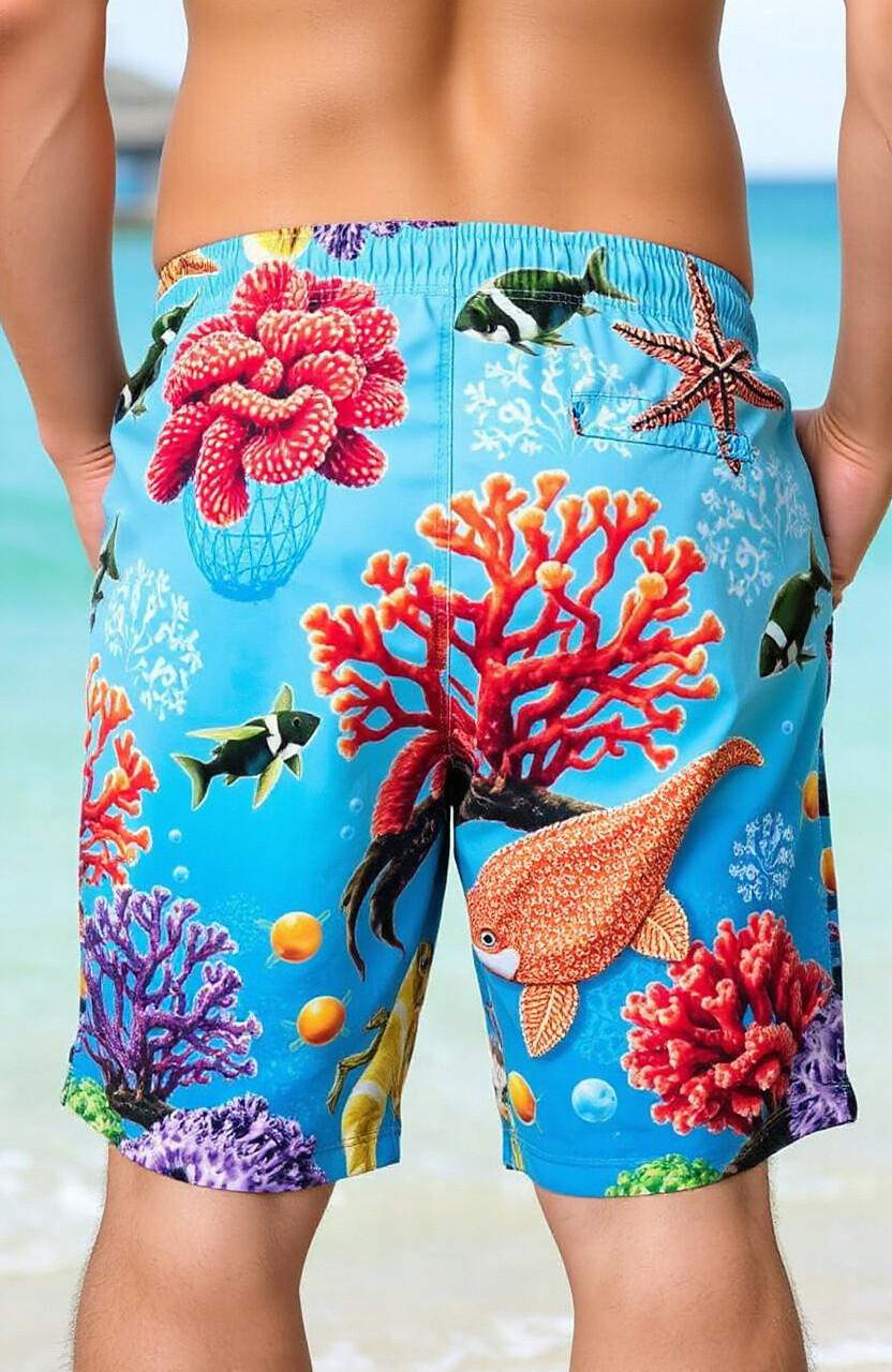 Bring the beauty of underwater life to your wardrobe with Coral Reef trunks. The intricate designs are vibrant and lively. Perfect for ocean enthusiasts.