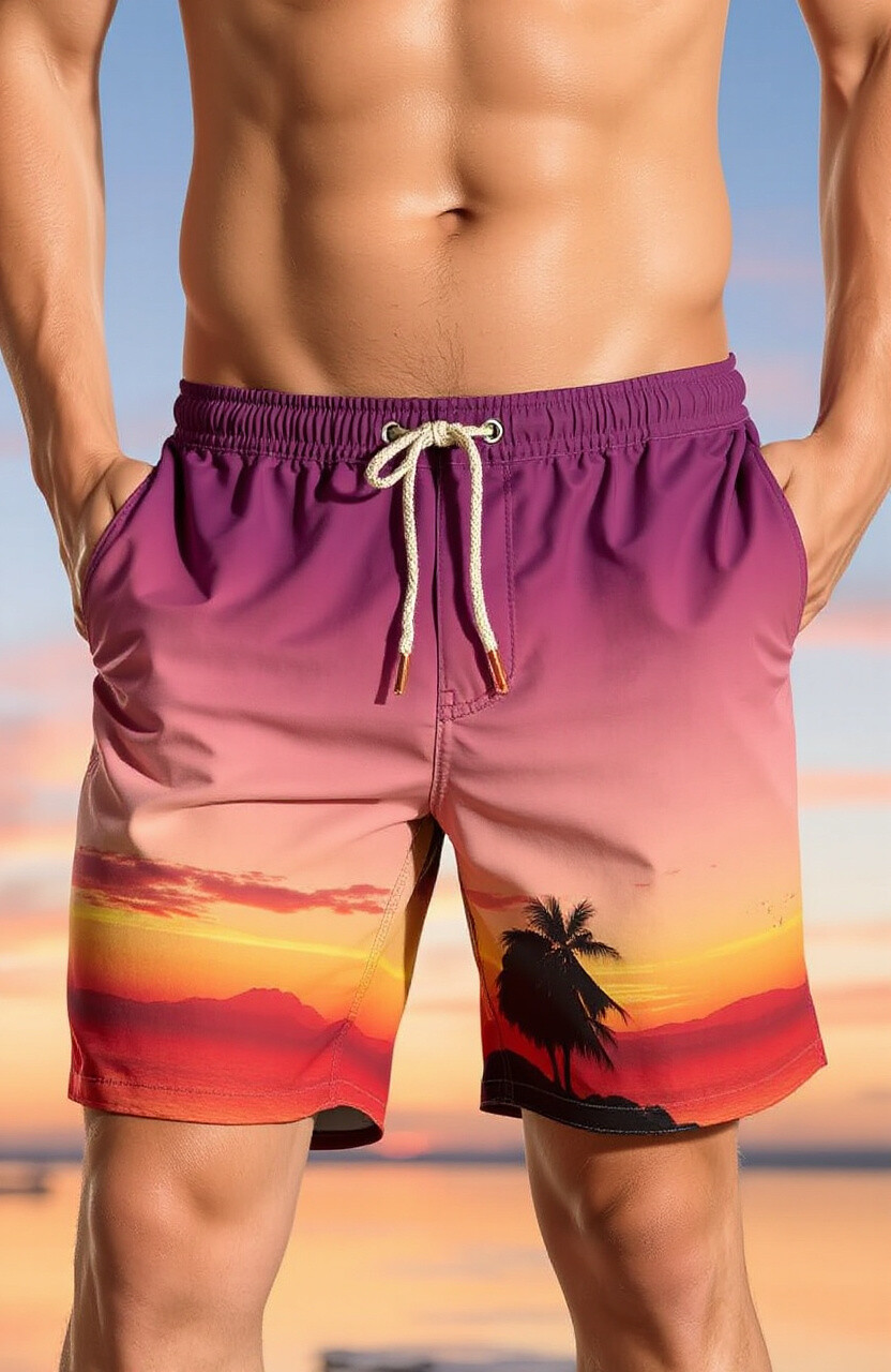 Feel the warmth of the sunset with Sunset Horizon trunks. The warm colors are soothing and beautiful. Perfect for a relaxing evening by the sea.