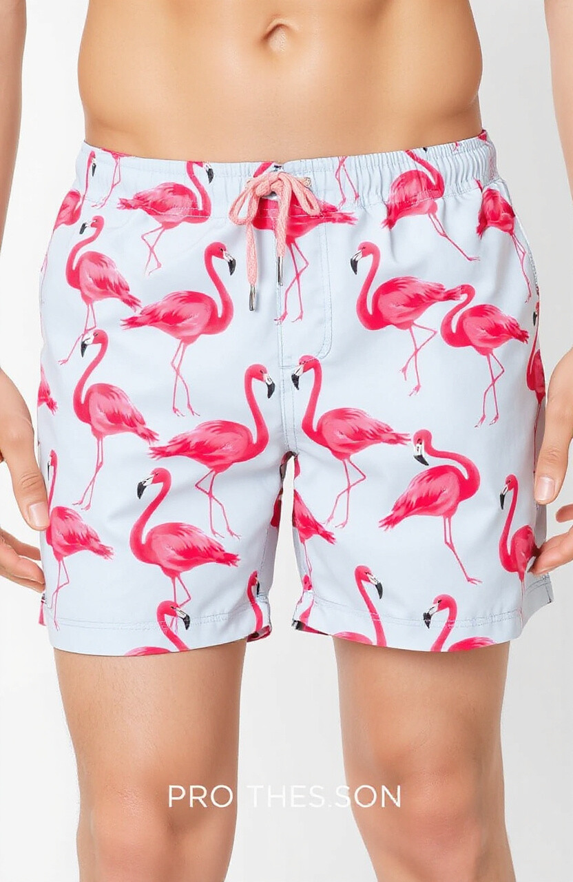 Bright pink flamingos dance across these trunks, adding a dose of fun to your swimwear. They’re great for anyone who loves a whimsical touch.