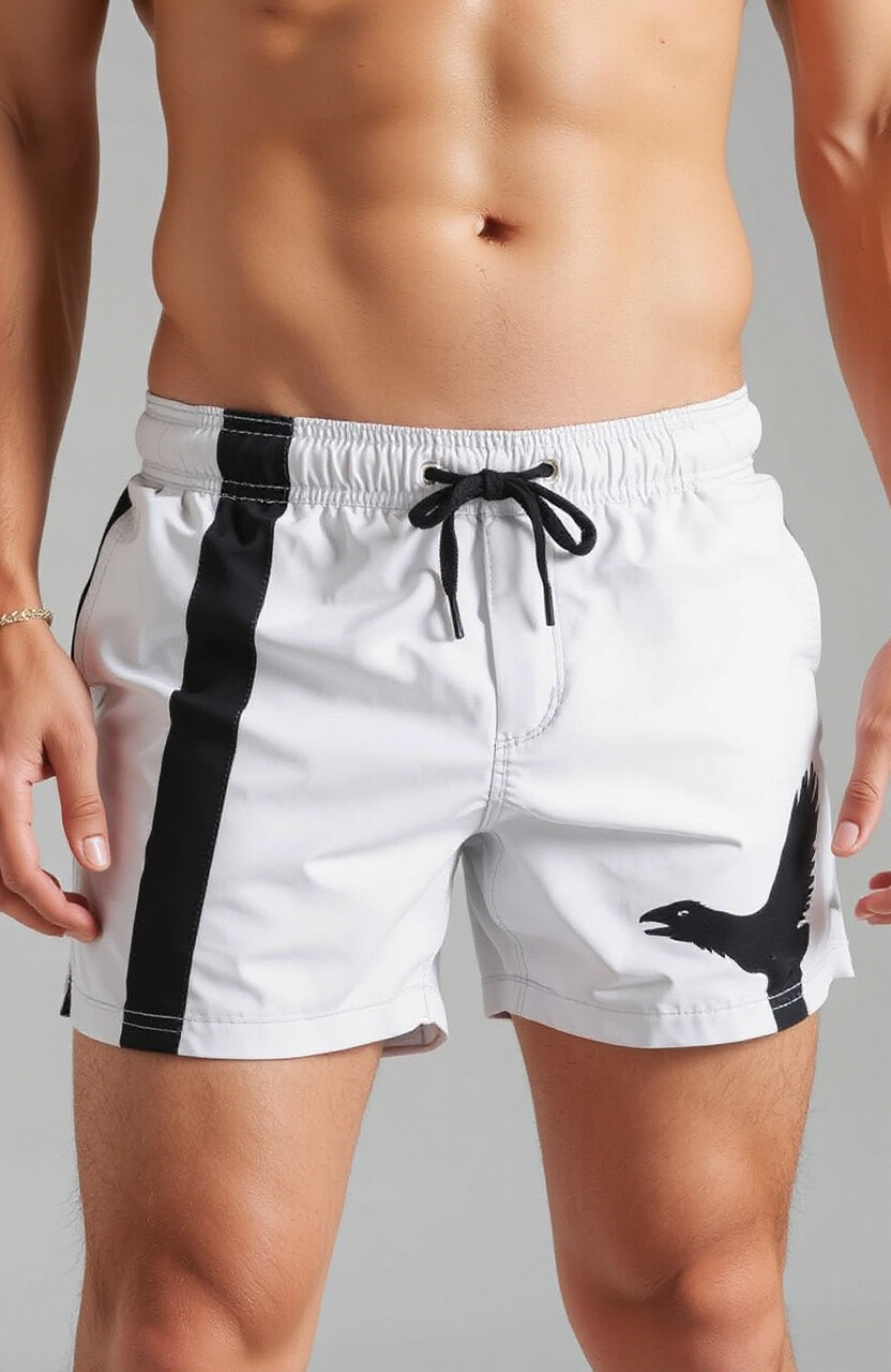 Keep it simple yet stylish with Monochrome Mood trunks. The black and white design is timeless and versatile. Perfect for any beach setting.