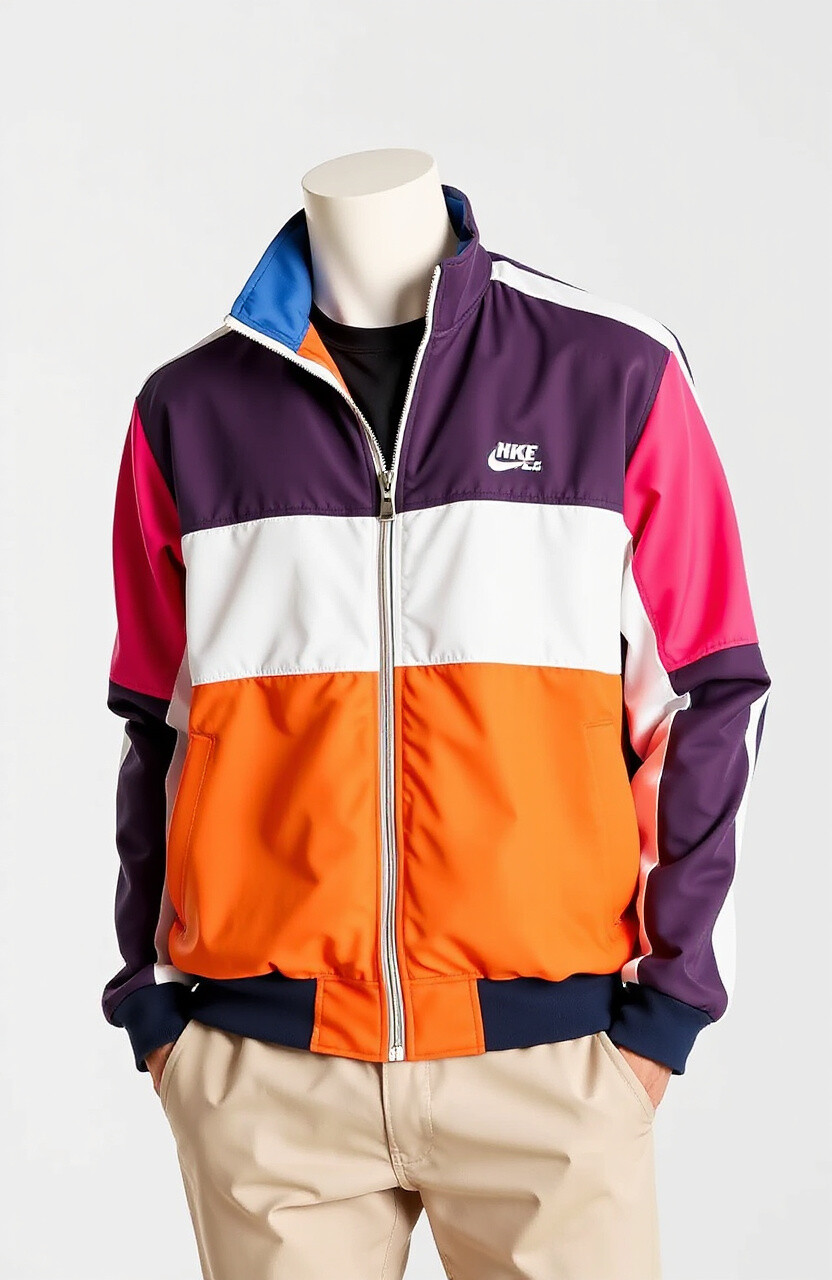 Color blocking is all the rage, and this jacket nails it. With bold and contrasting hues, it’s a visual treat.