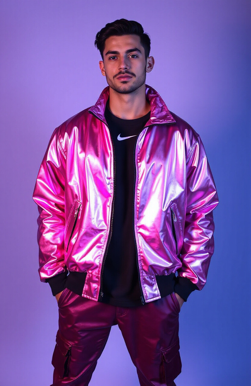 Shine bright with a metallic track jacket. It’s bold, flashy, and perfect for making a statement.
