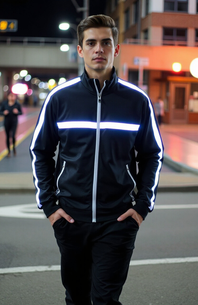 Stay safe and stylish with a reflective track jacket. Whether you’re out for a run or just out and about, it’s perfect for low-light conditions.