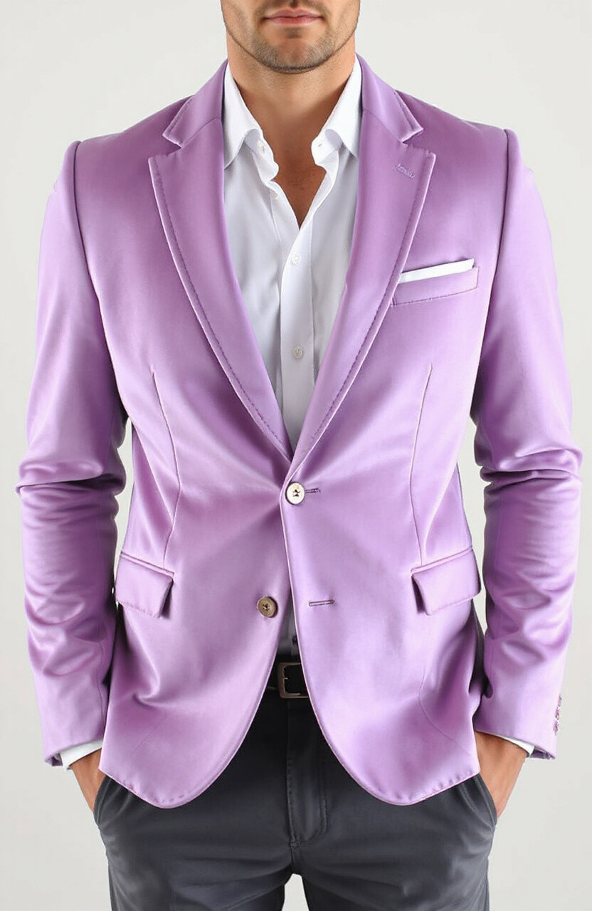 Lavender is soft and calming. This blazer is perfect for spring and summer events.